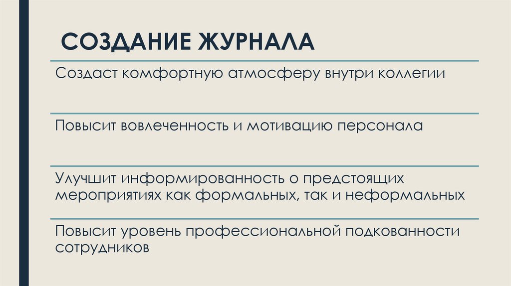 СОЗДАНИЕ ЖУРНАЛАСоздаст комфортную атмосферу внутри коллегии