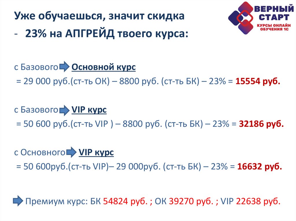 Уже обучаешься, значит скидка- 23% на АПГРЕЙД твоего курса: