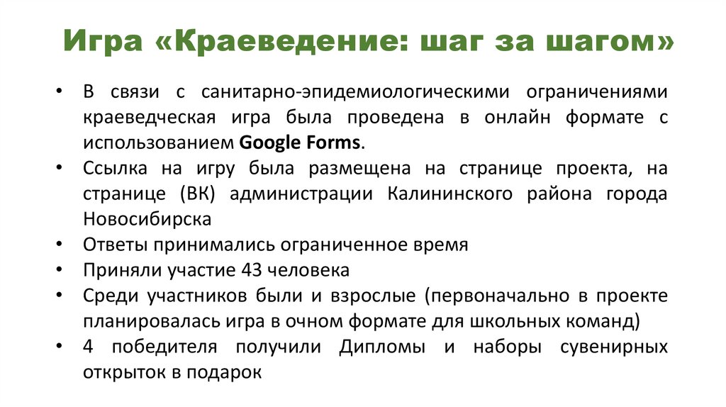 Игра «Краеведение: шаг за шагом»• В связи с санитарно-эпидемиологическими ограничениями
