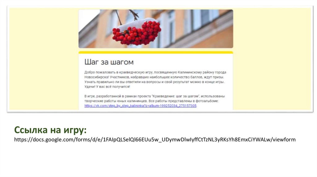Ссылка на игру:https://docs.google.com/forms/d/e/1FAIpQLSelQl66EUu5w_UDymwDlwIyffCtTzNL3yRKsYh8EmxCiYWALw/viewform