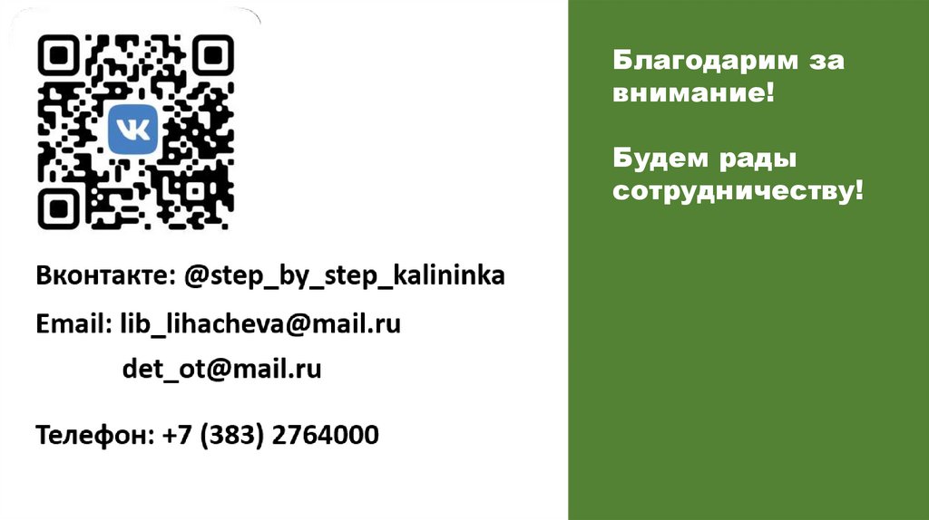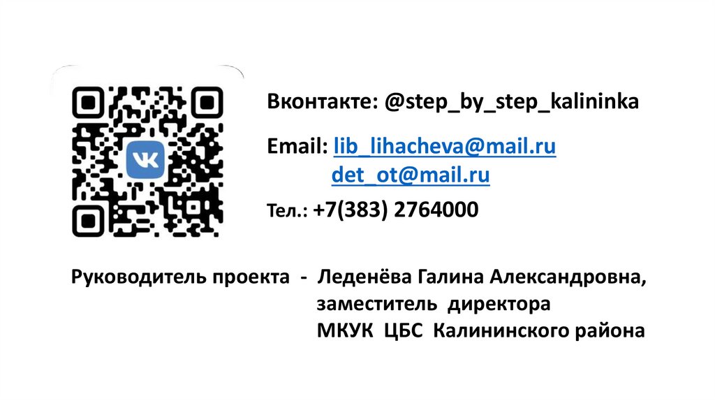 Вконтакте: @step_by_step_kalininkaEmail: lib_lihacheva@mail.ru