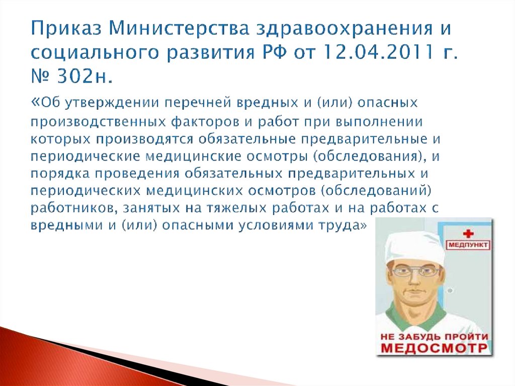 предварительных, периодических и внеочередных медицинских осмотров, обязательных