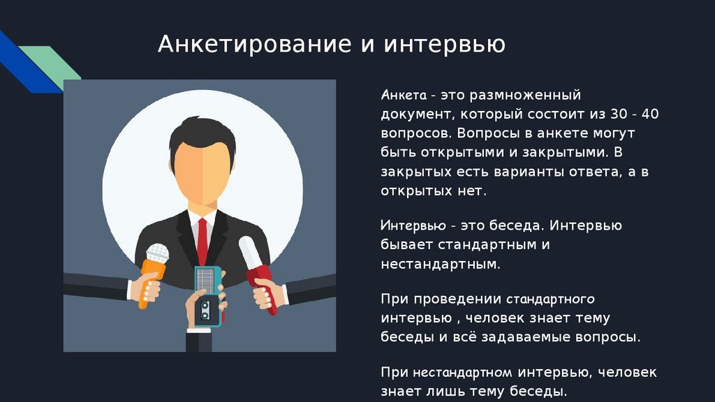 Анкетирование и интервьюАнкета - это размноженный