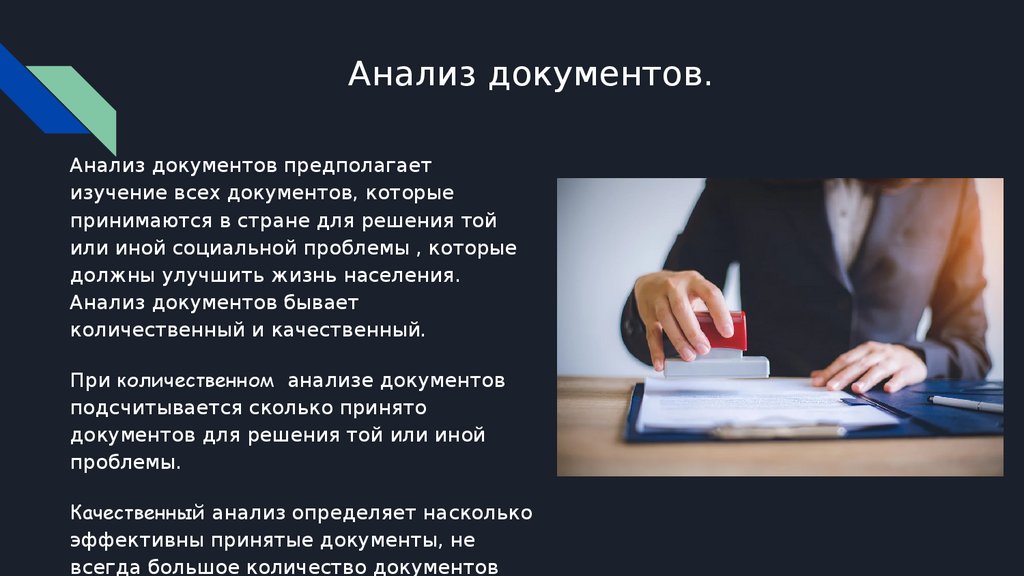 Анализ документов.Анализ документов предполагает