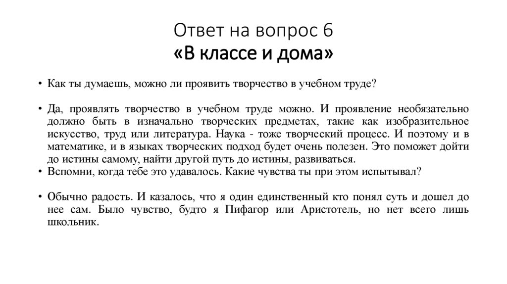 Ответ на вопрос 6«В классе и дома»