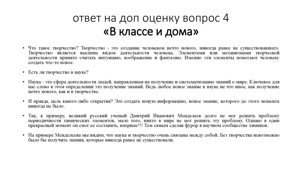 • На примере Менделеева мы видим, что наука и творчество очень связаны между собой. Без творчества невозможно