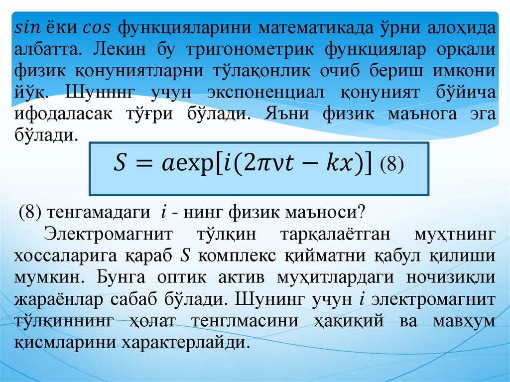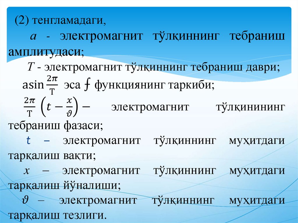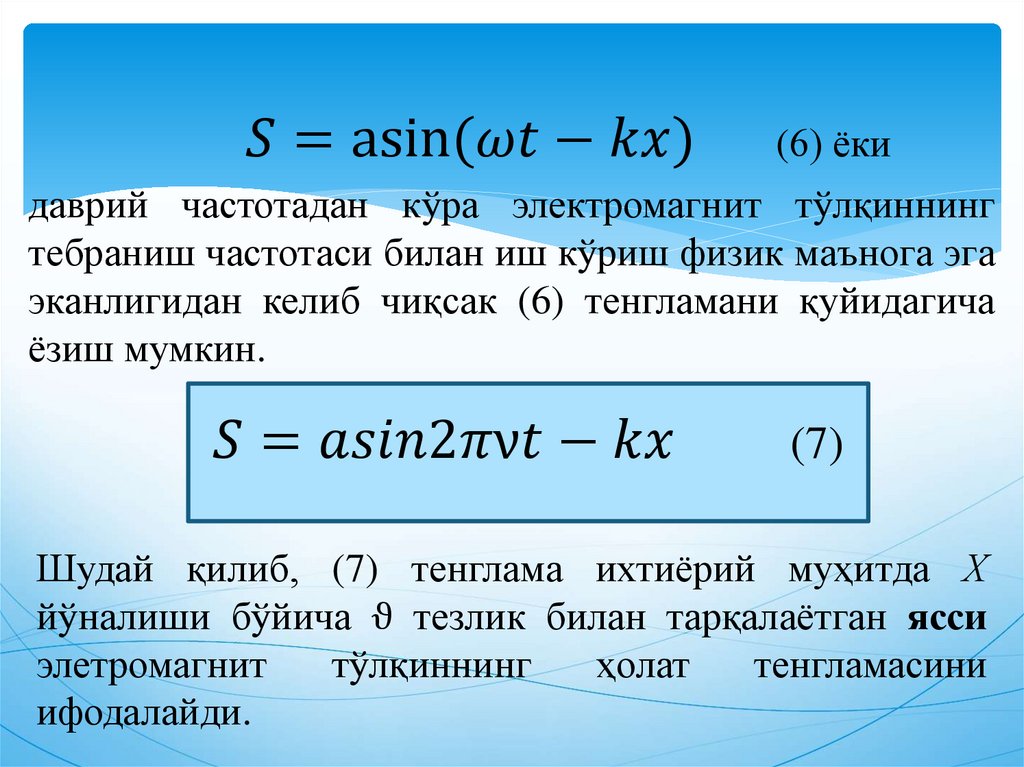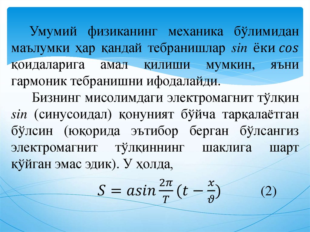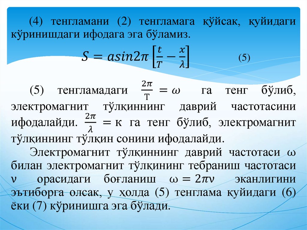 III.Мавзу: Ясси электромагнит тўлқин ваунинг хоссалари. Элeктромагнит тўлқин