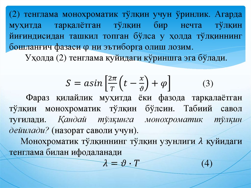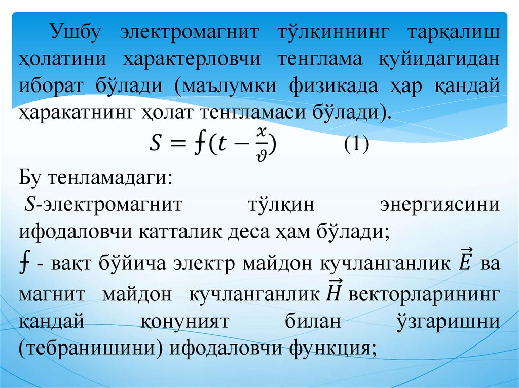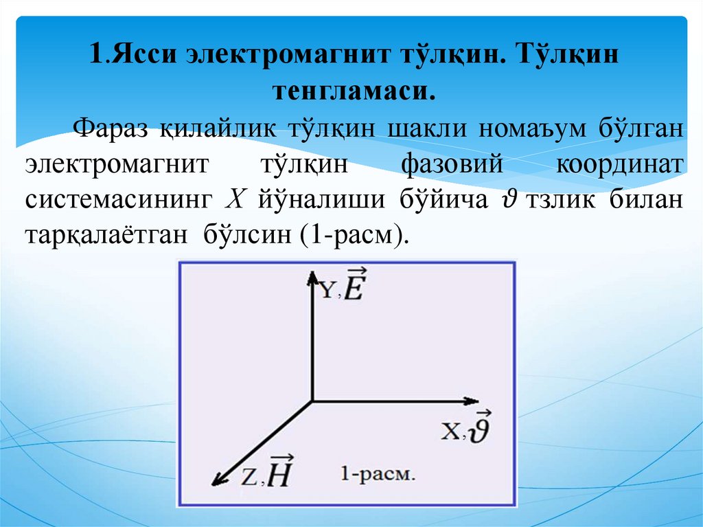 1. Ясси электромагнит тўлқин. Тўлқин тенгламаси.