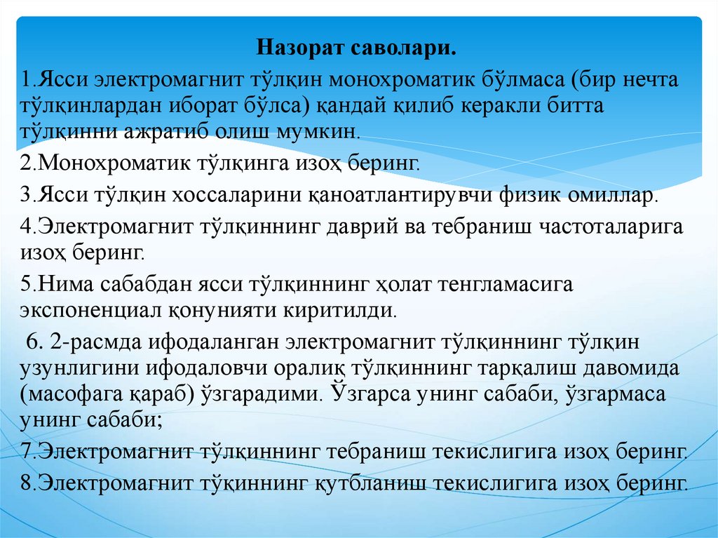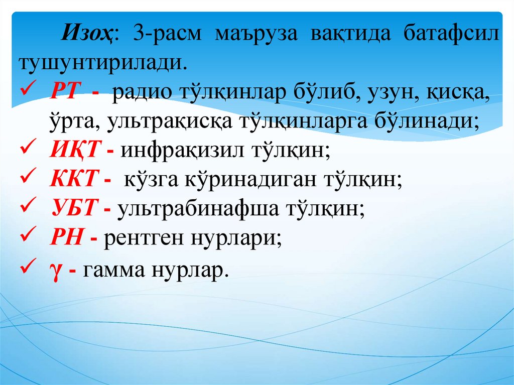 3.Электромагнит тўлқиннинг тўлқин узунлиги (