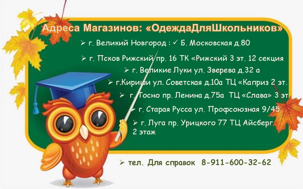 г. Великий Новгород : Б. Московская д.80г. Псков Рижский пр. 16 ТК «Рижский 3 эт. 12 секция