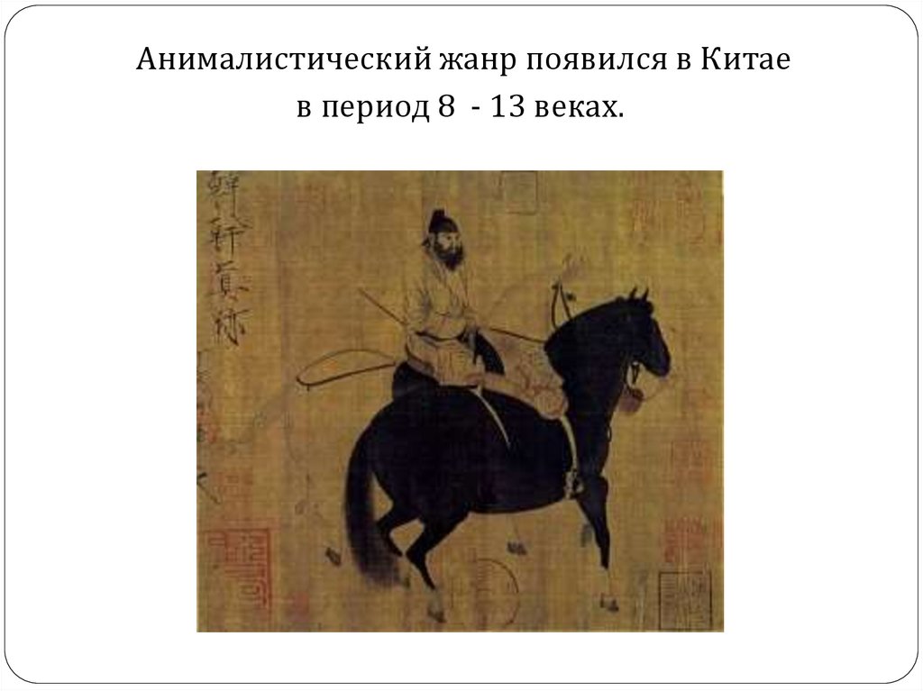 Анималистический жанр появился в Китаев период 8 - 13 веках.