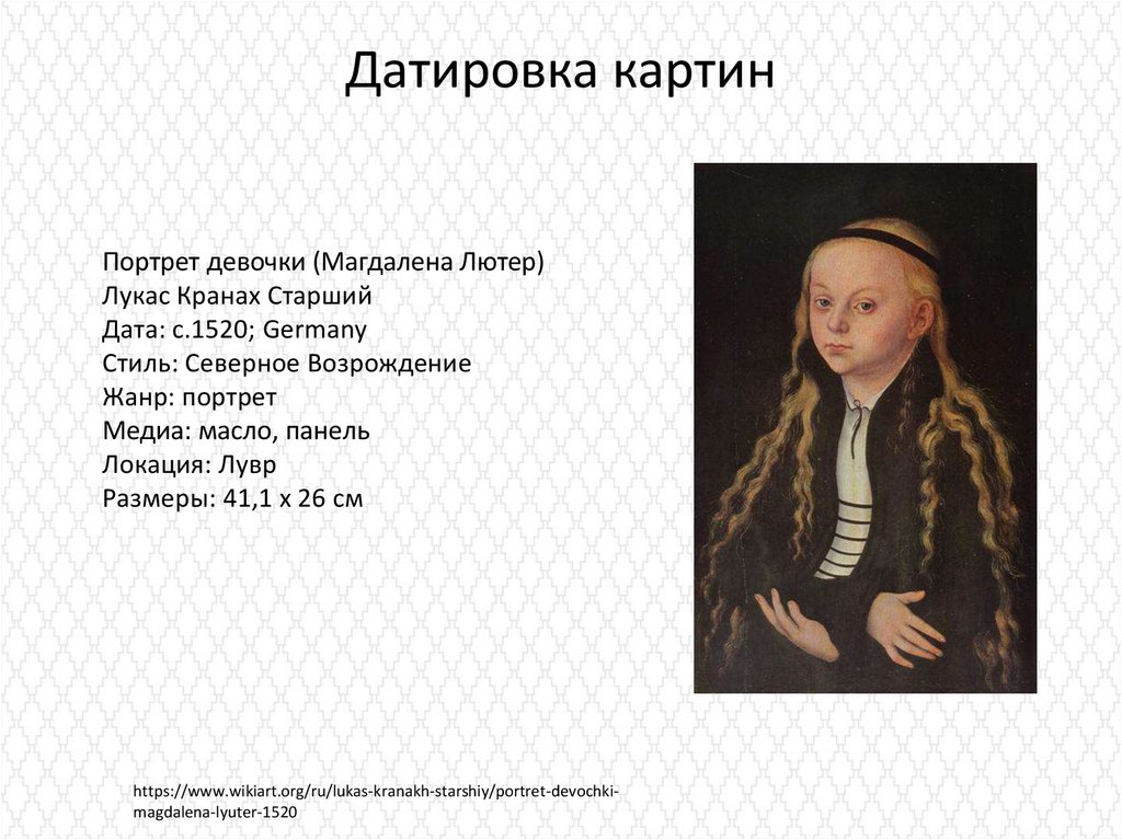 Датировка картинПортрет девочки (Магдалена Лютер)