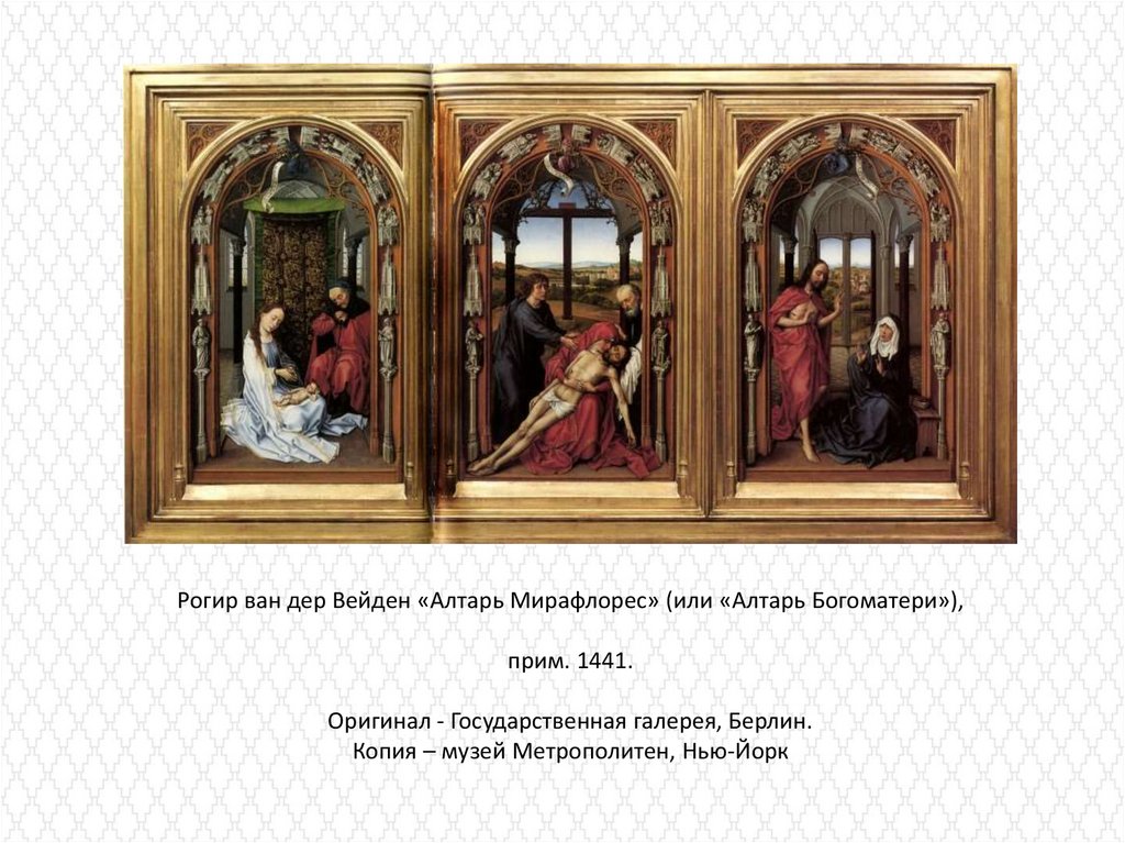 Рогир ван дер Вейден «Алтарь Мирафлорес» (или «Алтарь Богоматери»),прим. 1441.
