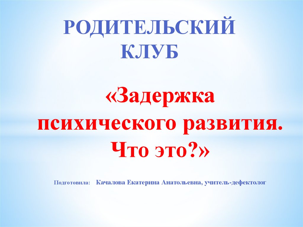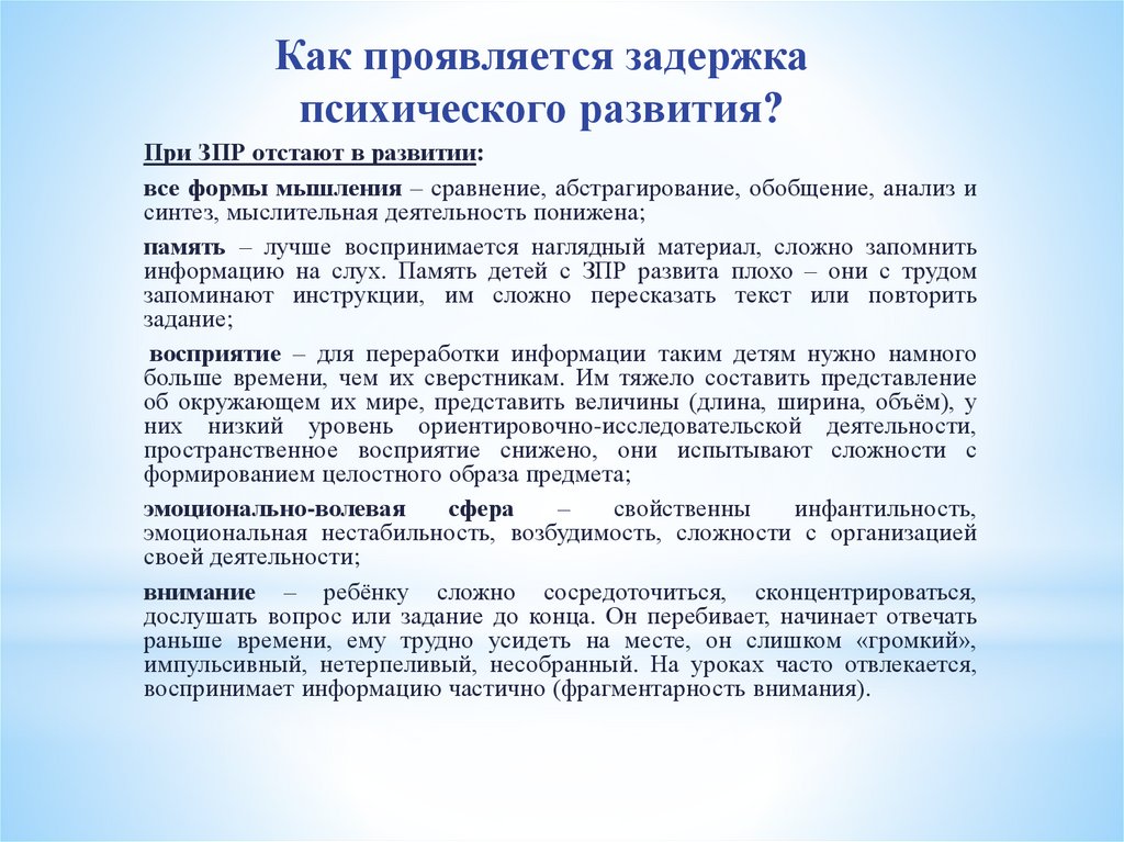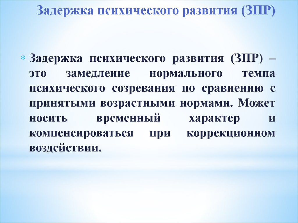 Задержка психического развития (ЗПР)Задержка психического развития (ЗПР) –