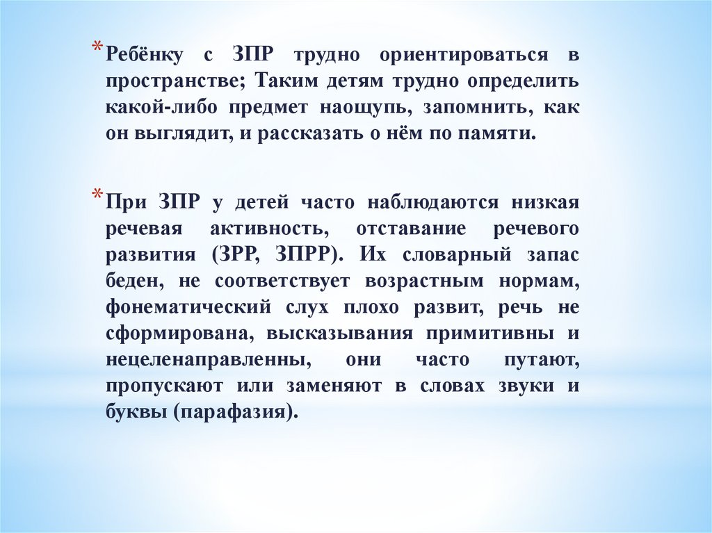 информацию на слух. Память детей с ЗПР развита плохо – они с трудом