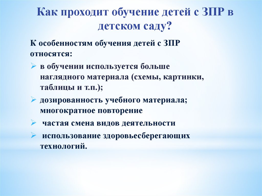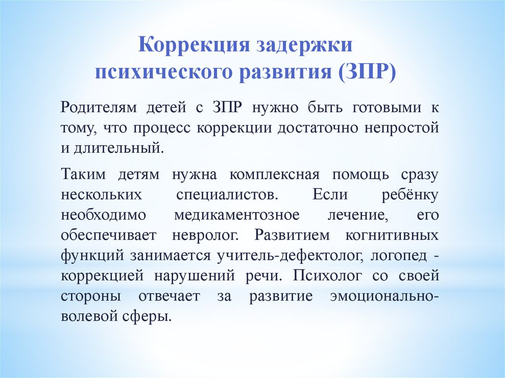 Дети с ЗПР обучаемы и при правильноорганизованной коррекционной работе в