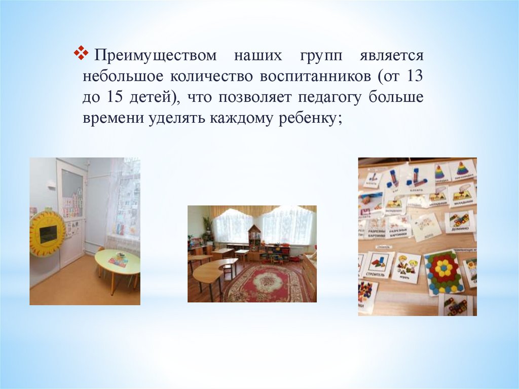 Преимуществом наших групп являетсянебольшое количество воспитанников (от 13