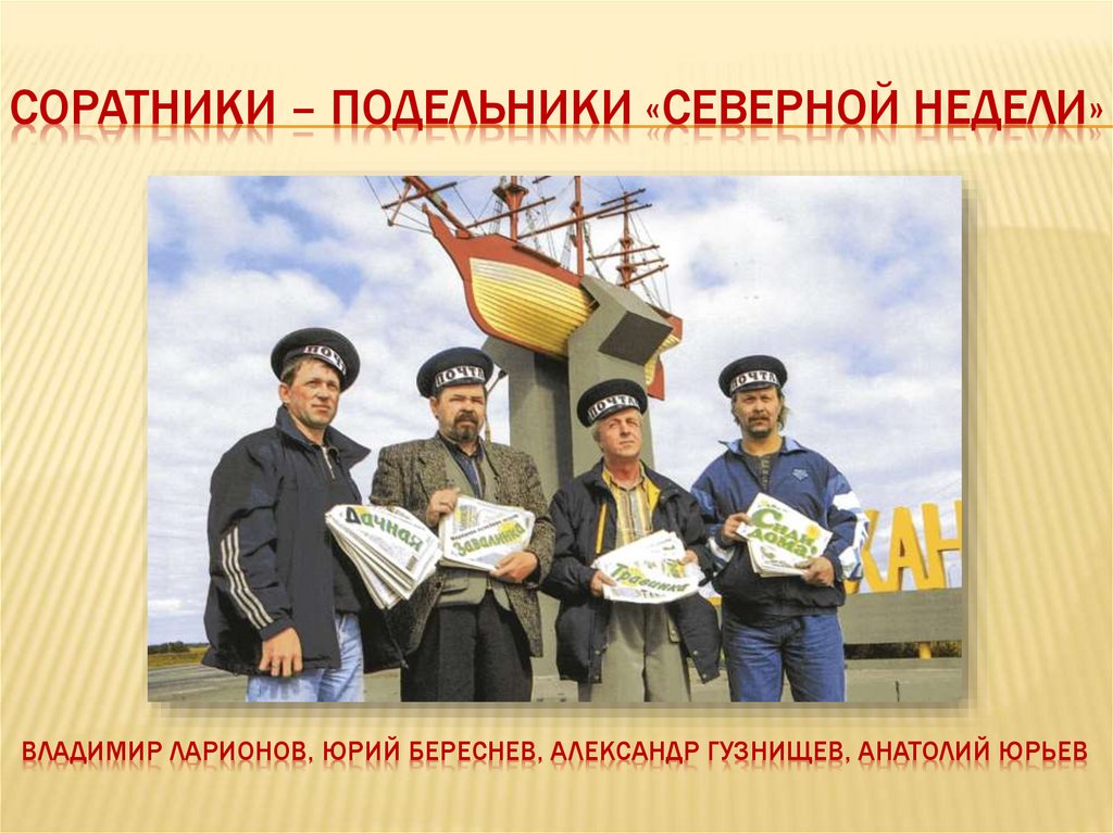 СОРАТНИКИ – ПОДЕЛЬНИКИ «СЕВЕРНОЙ НЕДЕЛИ»ВЛАДИМИР ЛАРИОНОВ, ЮРИЙ БЕРЕСНЕВ, АЛЕКСАНДР ГУЗНИЩЕВ, АНАТОЛИЙ ЮРЬЕВ