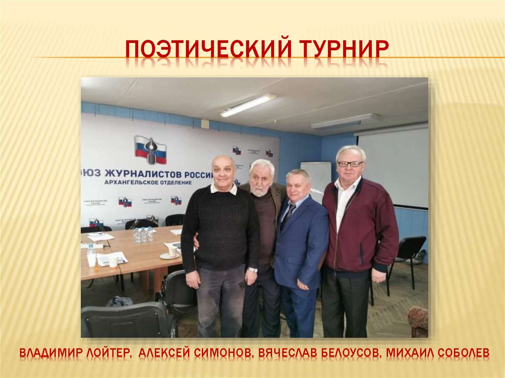 ПОЭТИЧЕСКИЙ ТУРНИРВЛАДИМИР ЛОЙТЕР, АЛЕКСЕЙ СИМОНОВ, ВЯЧЕСЛАВ БЕЛОУСОВ, МИХАИЛ СОБОЛЕВ