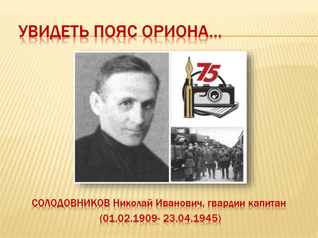 УВИДЕТЬ ПОЯС ОРИОНА…СОЛОДОВНИКОВ Николай Иванович, гвардии капитан