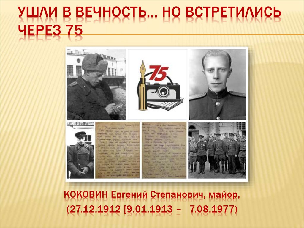 УШЛИ В ВЕЧНОСТЬ… НО ВСТРЕТИЛИСЬЧЕРЕЗ 75