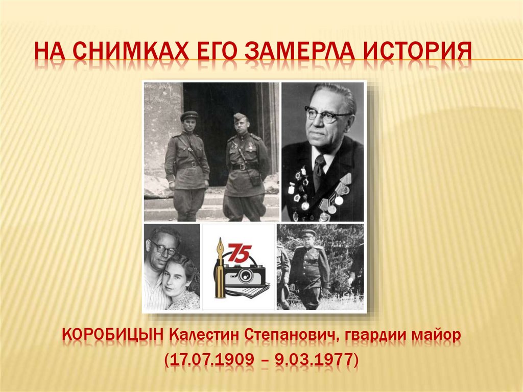 НА СНИМКАХ ЕГО ЗАМЕРЛА ИСТОРИЯКОРОБИЦЫН Калестин Степанович, гвардии майор