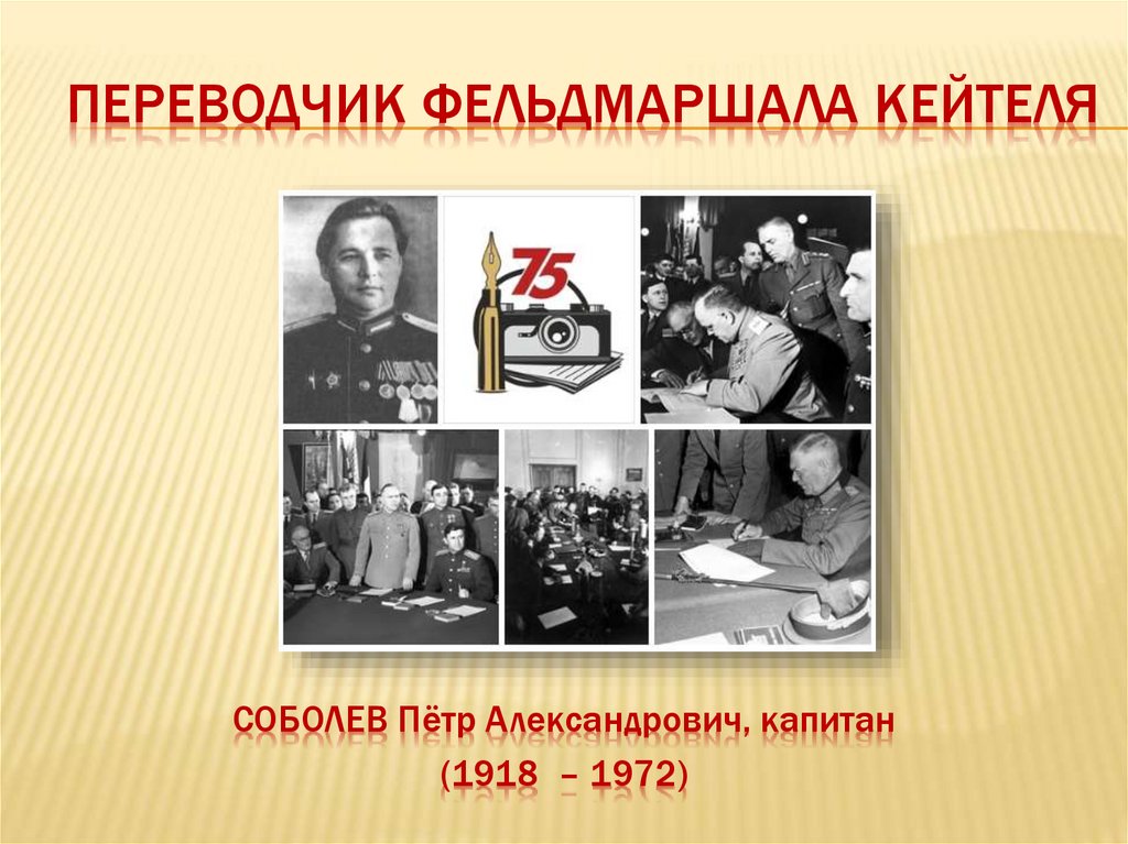 ПЕРЕВОДЧИК ФЕЛЬДМАРШАЛА КЕЙТЕЛЯСОБОЛЕВ Пётр Александрович, капитан