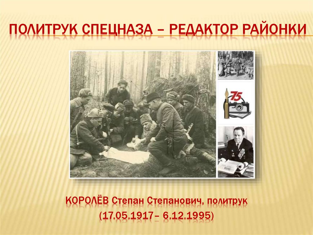 ПОЛИТРУК СПЕЦНАЗА – РЕДАКТОР РАЙОНКИКОРОЛЁВ Степан Степанович, политрук