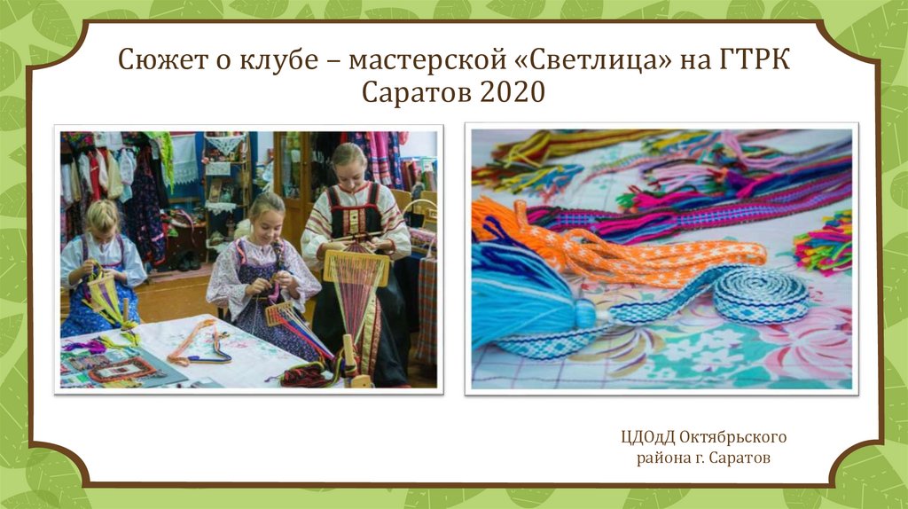 Сюжет о клубе – мастерской «Светлица» на ГТРКСаратов 2020