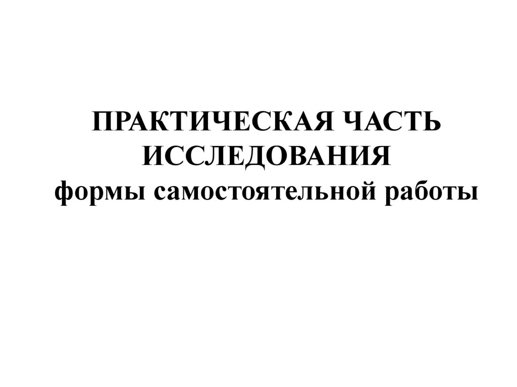 ПРАКТИЧЕСКАЯ ЧАСТЬИССЛЕДОВАНИЯ