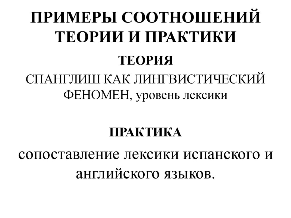 ПРИМЕРЫ СООТНОШЕНИЙТЕОРИИ И ПРАКТИКИ