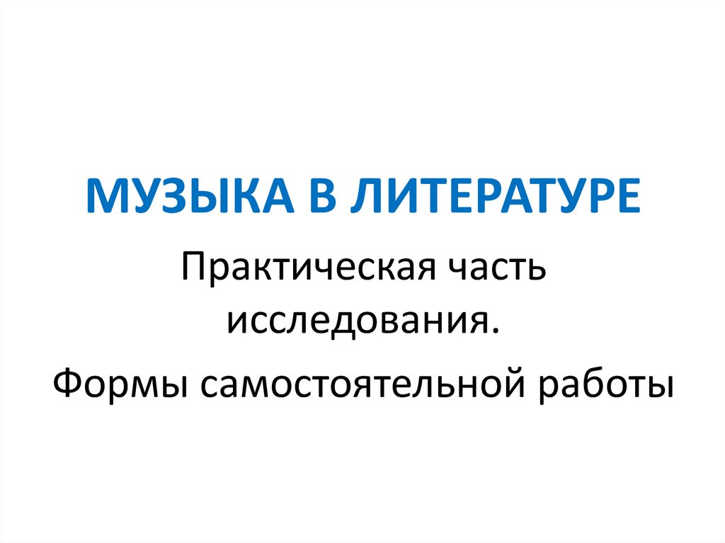 МУЗЫКА В ЛИТЕРАТУРЕПрактическая часть
