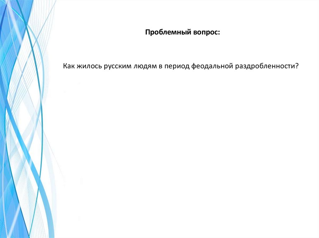 Проблемный вопрос:Как жилось русским людям в период феодальной раздробленности?