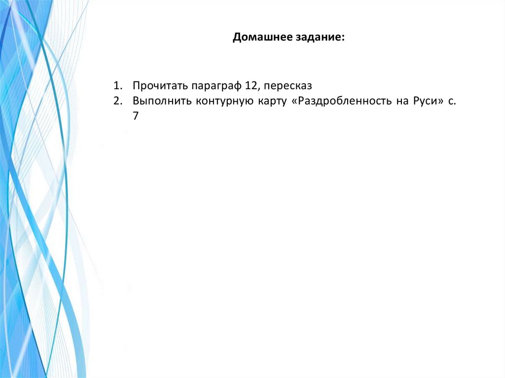 Домашнее задание:1. Прочитать параграф 12, пересказ