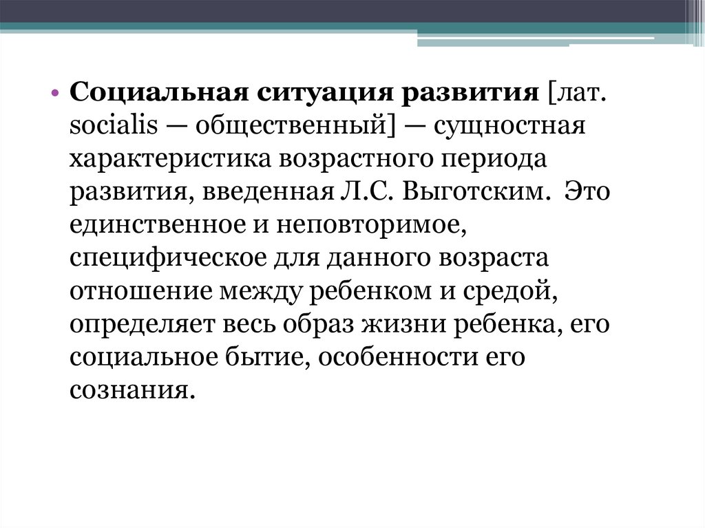 • Социальная ситуация развития [лат.socialis — общественный] — сущностная