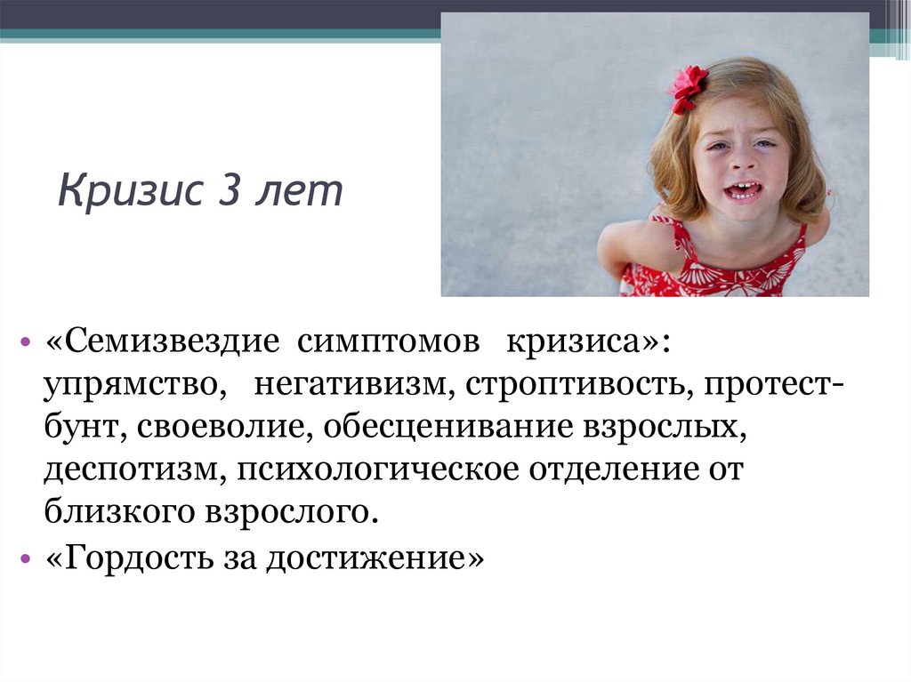 Кризис 3 лет• «Семизвездие симптомов кризиса»: