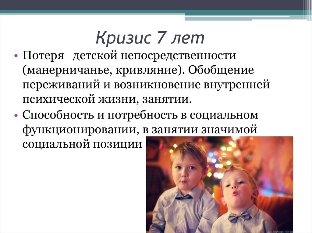 Кризис 7 лет• Потеря детской непосредственности