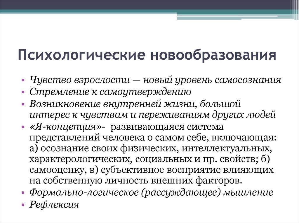 Психологические новообразования• Чувство взрослости — новый уровень самосознания