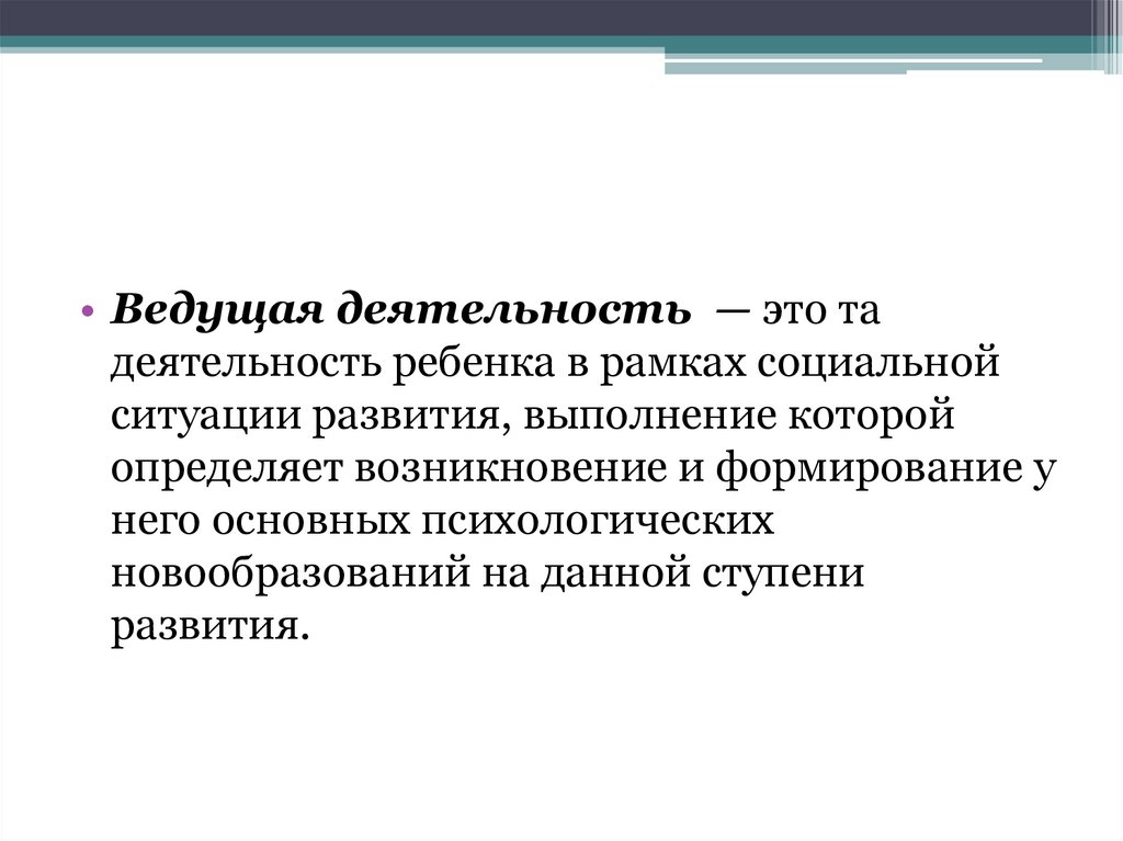 • Ведущая деятельность — это тадеятельность ребенка в рамках социальной
