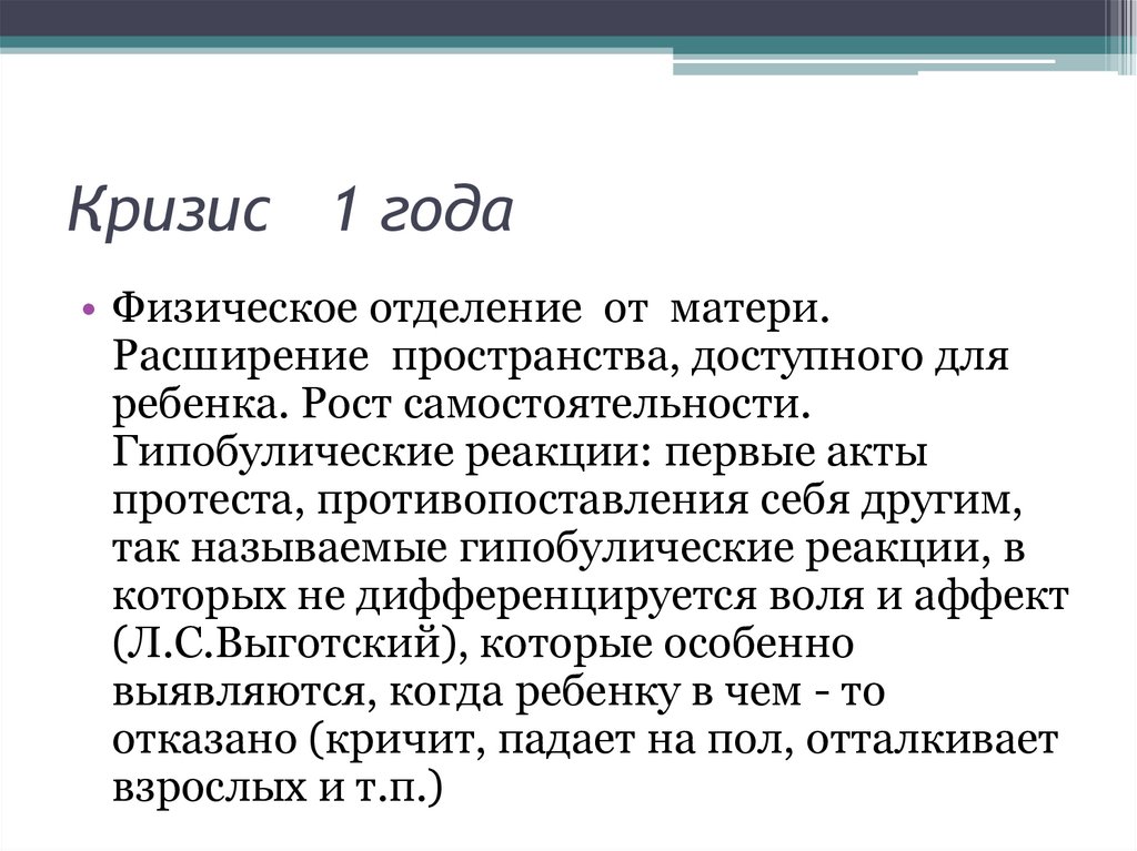Кризис 1 года• Физическое отделение от матери.