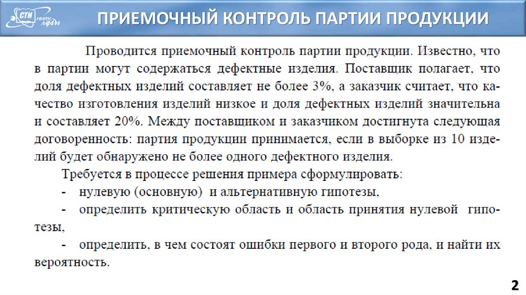 ПРИЕМОЧНЫЙ КОНТРОЛЬ ПАРТИИ ПРОДУКЦИИ2