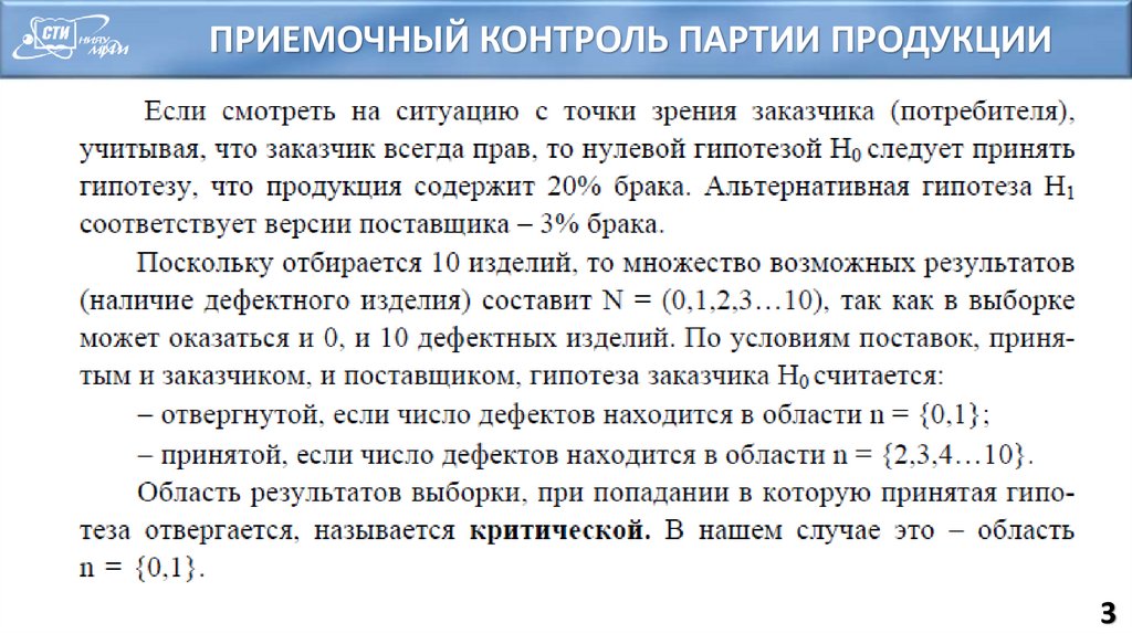 ПРИЕМОЧНЫЙ КОНТРОЛЬ ПАРТИИ ПРОДУКЦИИ3