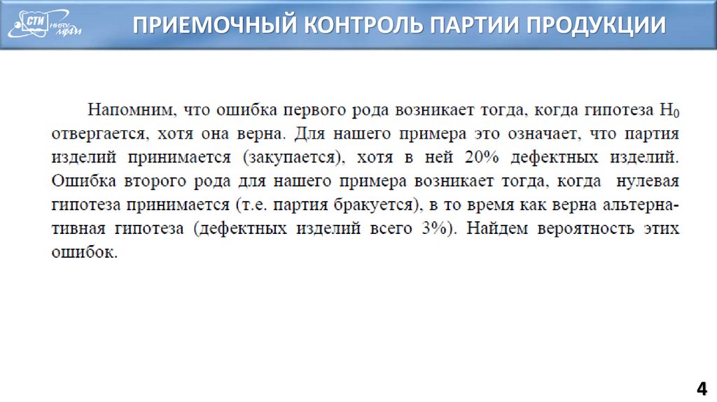 ПРИЕМОЧНЫЙ КОНТРОЛЬ ПАРТИИ ПРОДУКЦИИ4