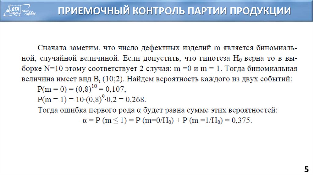 ПРИЕМОЧНЫЙ КОНТРОЛЬ ПАРТИИ ПРОДУКЦИИ5