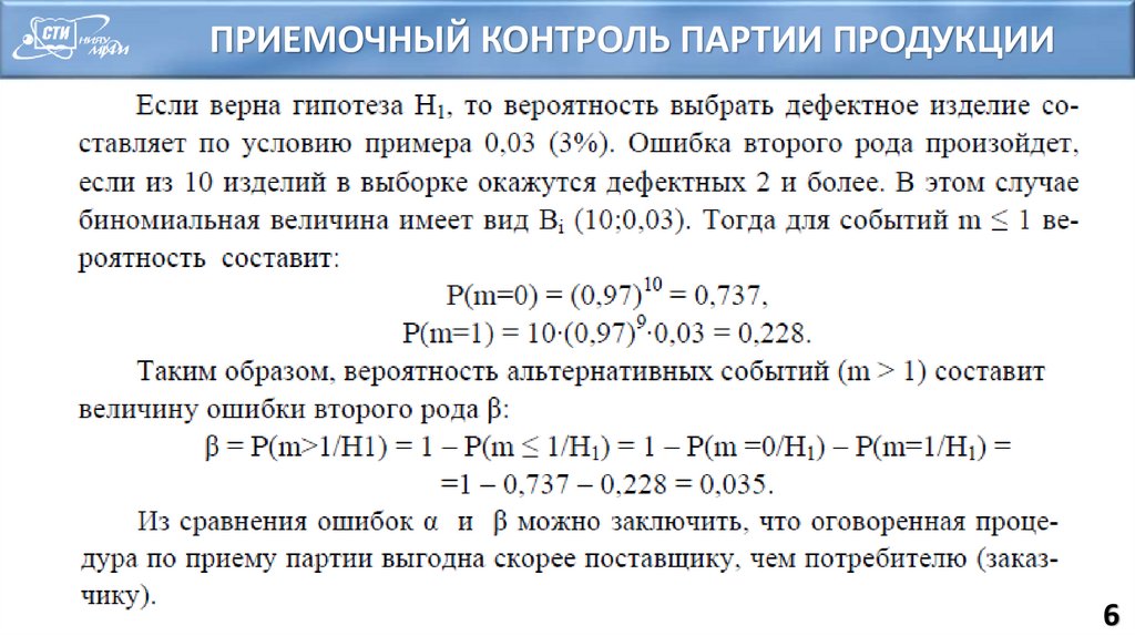 ПРИЕМОЧНЫЙ КОНТРОЛЬ ПАРТИИ ПРОДУКЦИИ6