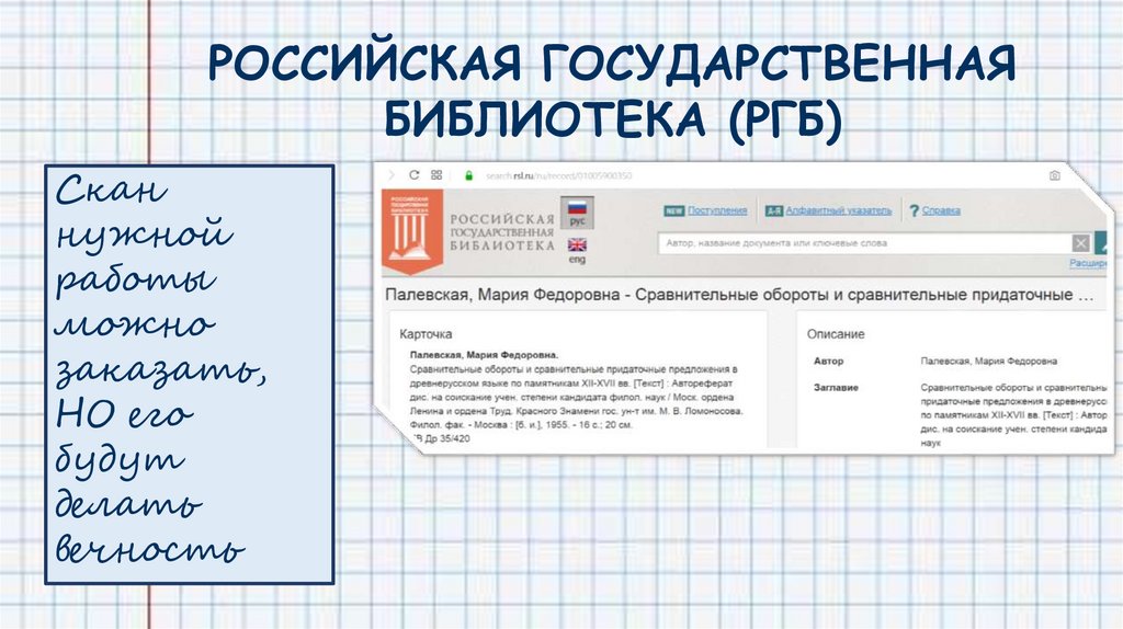 РОССИЙСКАЯ ГОСУДАРСТВЕННАЯБИБЛИОТЕКА (РГБ)
