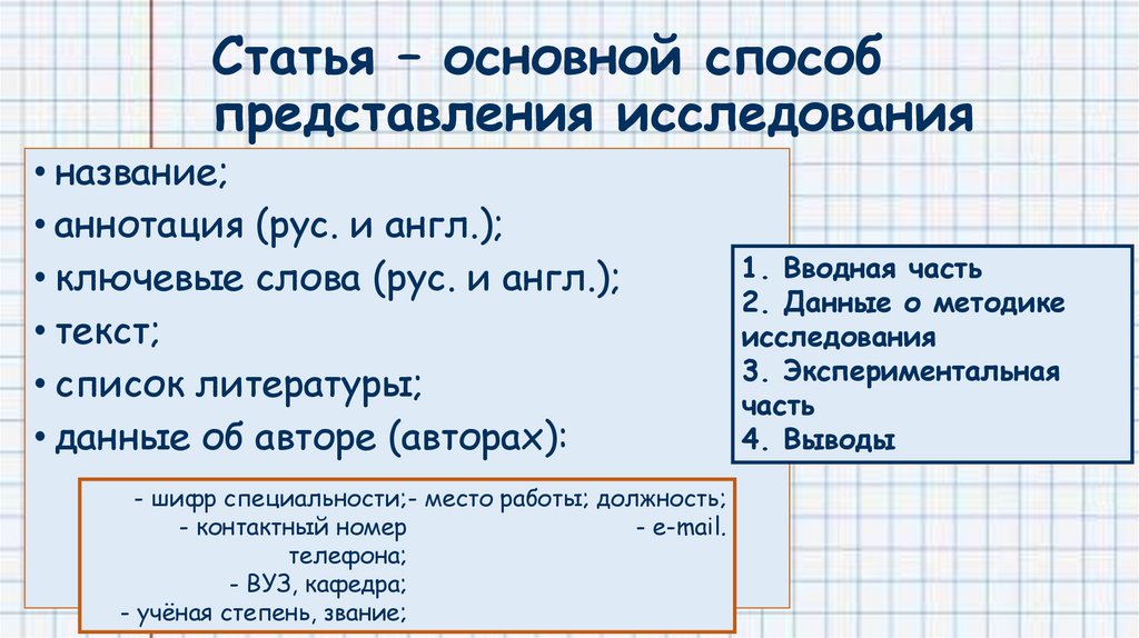 •Вступление. Содержит информацию об актуальности и новизне. Автору