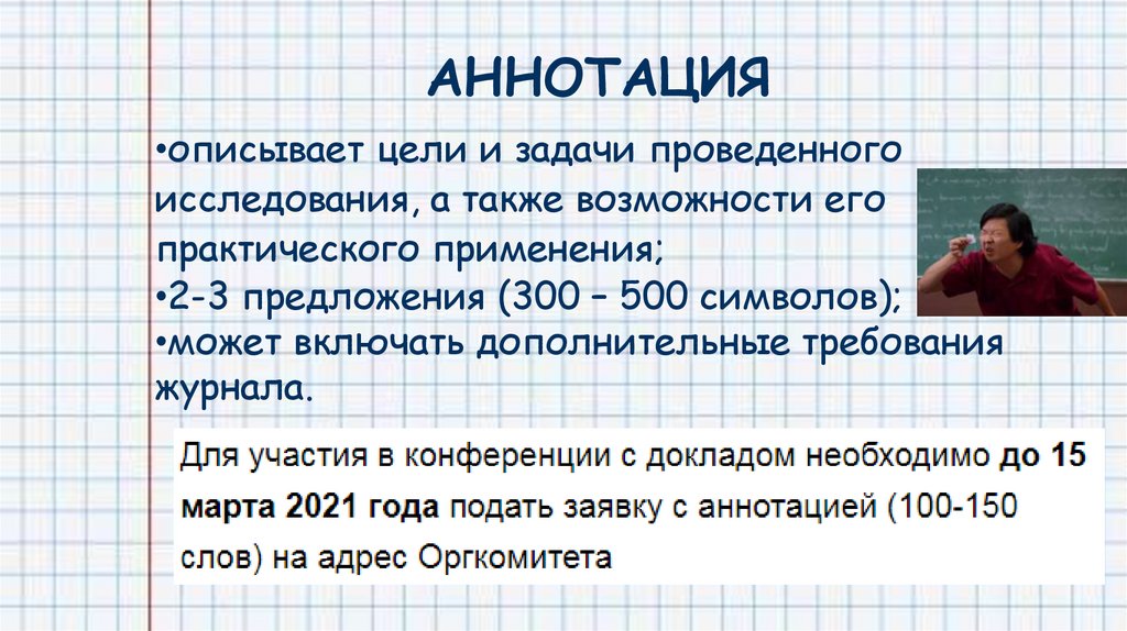 АННОТАЦИЯ•описывает цели и задачи проведенного