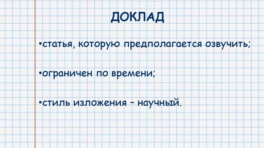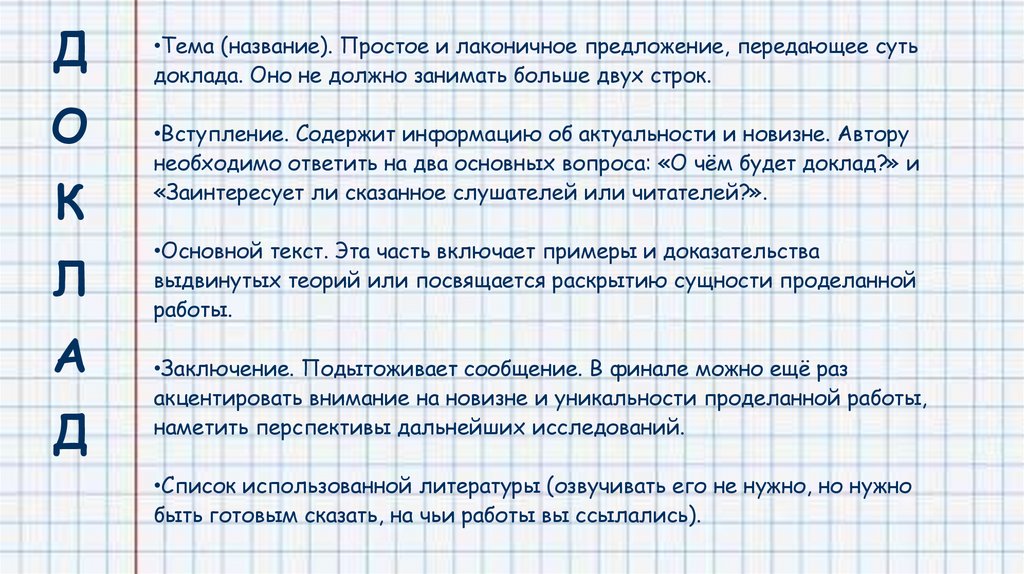 необходимо ответить на два основных вопроса: «О чём будет доклад?» и