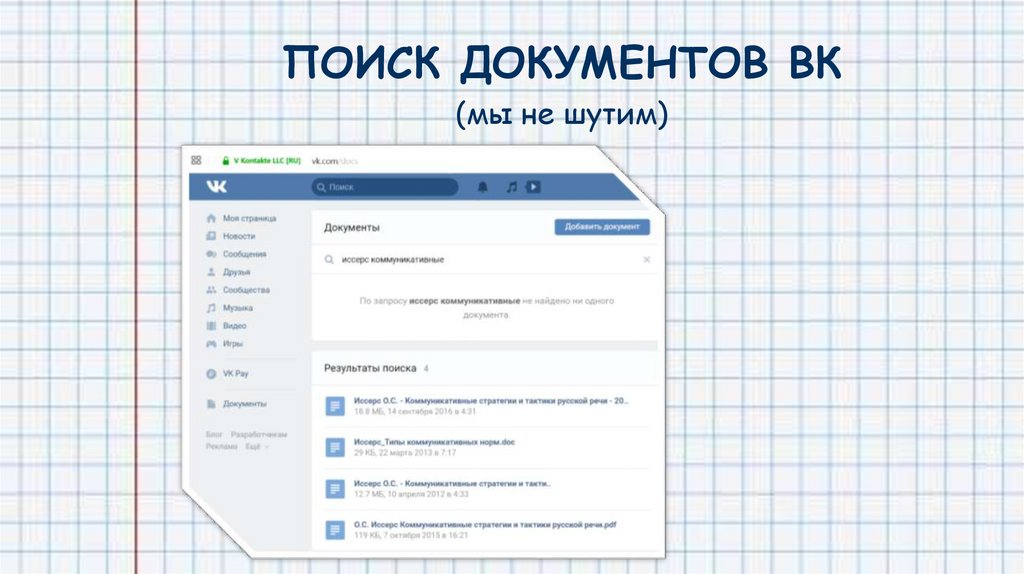 ПОИСК ДОКУМЕНТОВ ВК(мы не шутим)